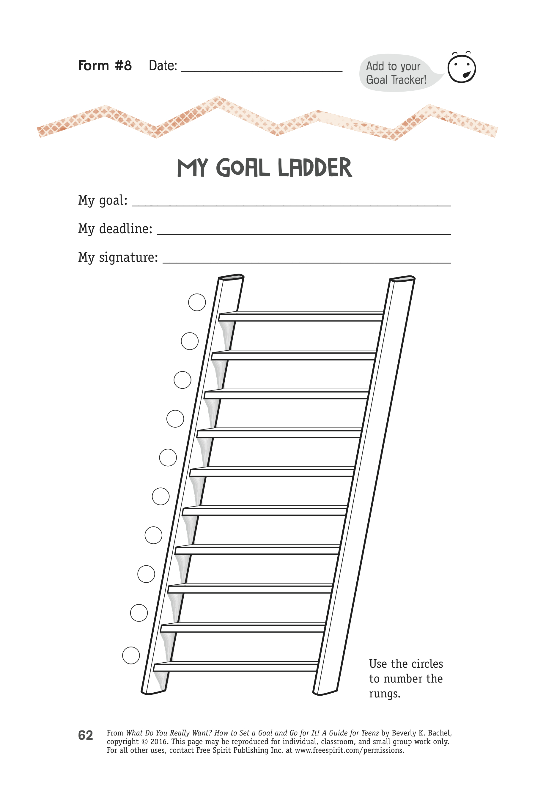 Below is a blank ladder for setting goals. Your goal may be that your child can separate from you. You can break this down into small steps and link a reward to each step. It’s great if that reward is time with you. This helps your child to learn that by being independent it gives you as a parent more quality time to spend with them.